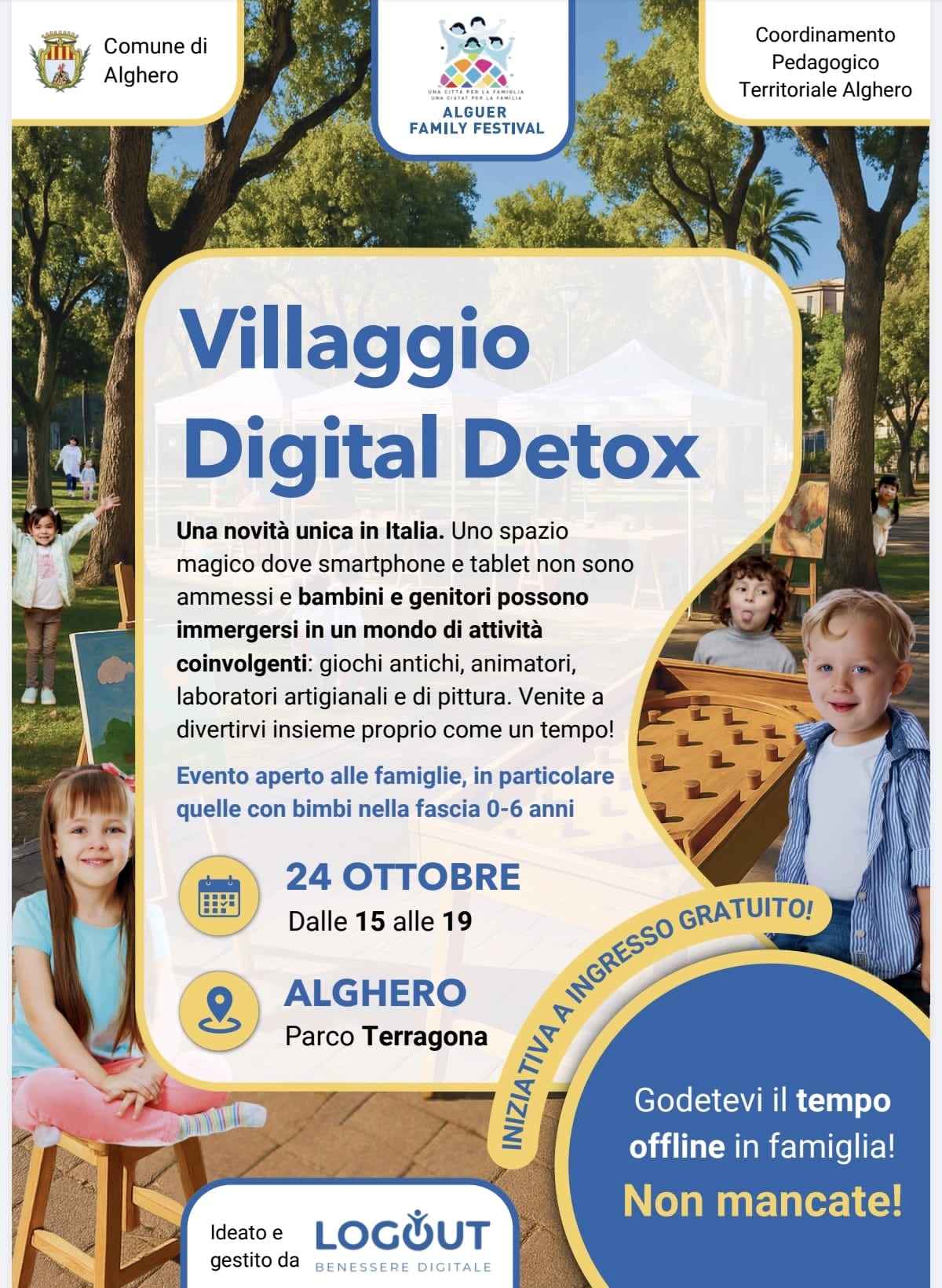 In occasione dell'Alghero Family Festival, la città di Alghero presenta il "Villaggio Digital Detox", un'iniziativa dedicata a riscoprire il piacere di stare insieme senza schermi.